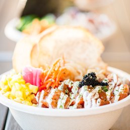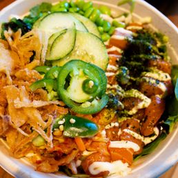 Love love love their pickled veggies! They make their pickled daikon and kimchi in house and it's delicious. Definitely get the fried onions to top off your poke bowls (best fried onions I've had!). Their truffle aioli is also must try! Service was quick and to-the-point. This is a quick grab-and-go place though parking can be a bit tricky. The only negative was that they can be quite stingy about their fish. They weigh the fish portions to be extremely exact. They seemed to have great happy hour deals -- never tried it myself but will do so next time!