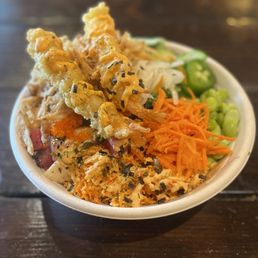 This poke spot always hits the spot! I tried it recently for the first time and it was one of the best poke spots in San Mateo in my opinion! I always order a side of taro chips to go with my bowl, so good! I would have put 5 stars but customer service is ehh. It seems as if I'm bothering the workers when I'm ordering if that makes sense. This honestly keeps me away from coming in more often. It's kind of off putting :(